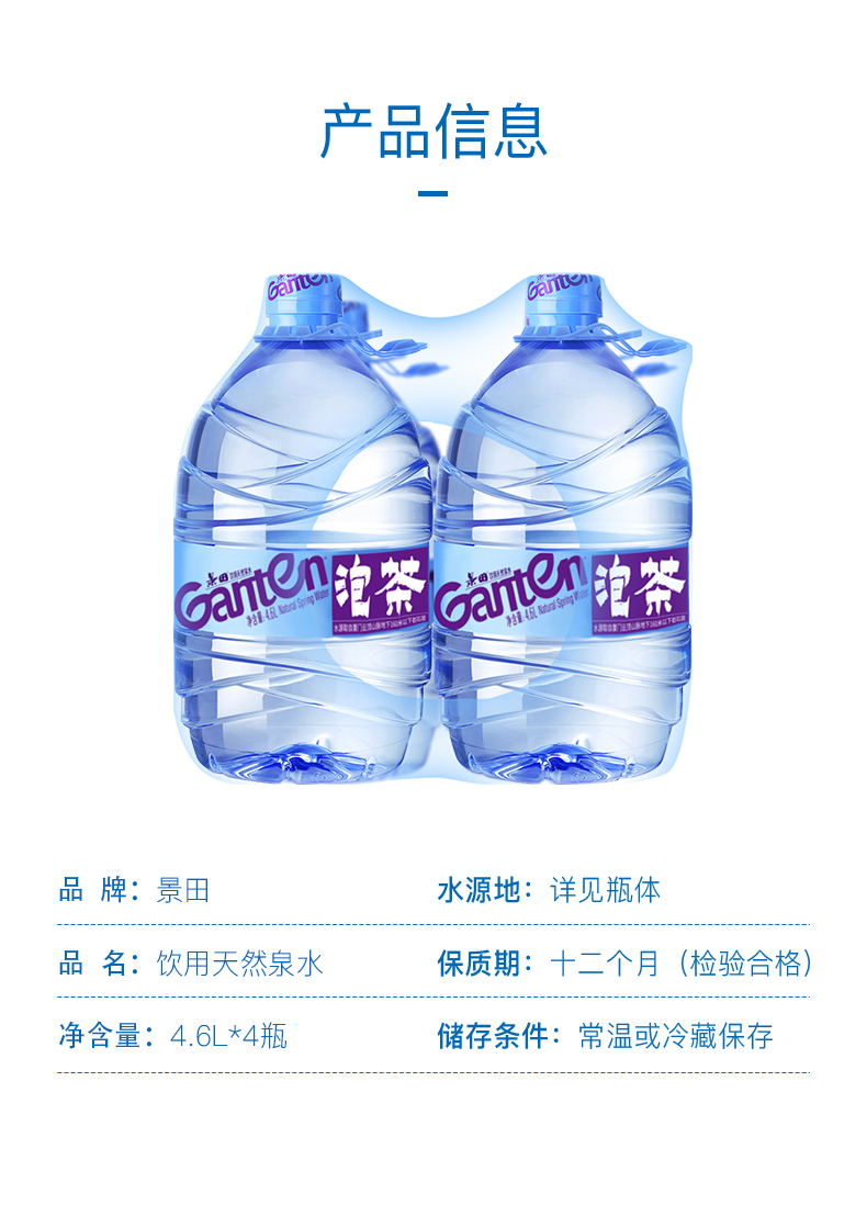 景田饮用天然泉水 4.6L*4桶【泡茶水】