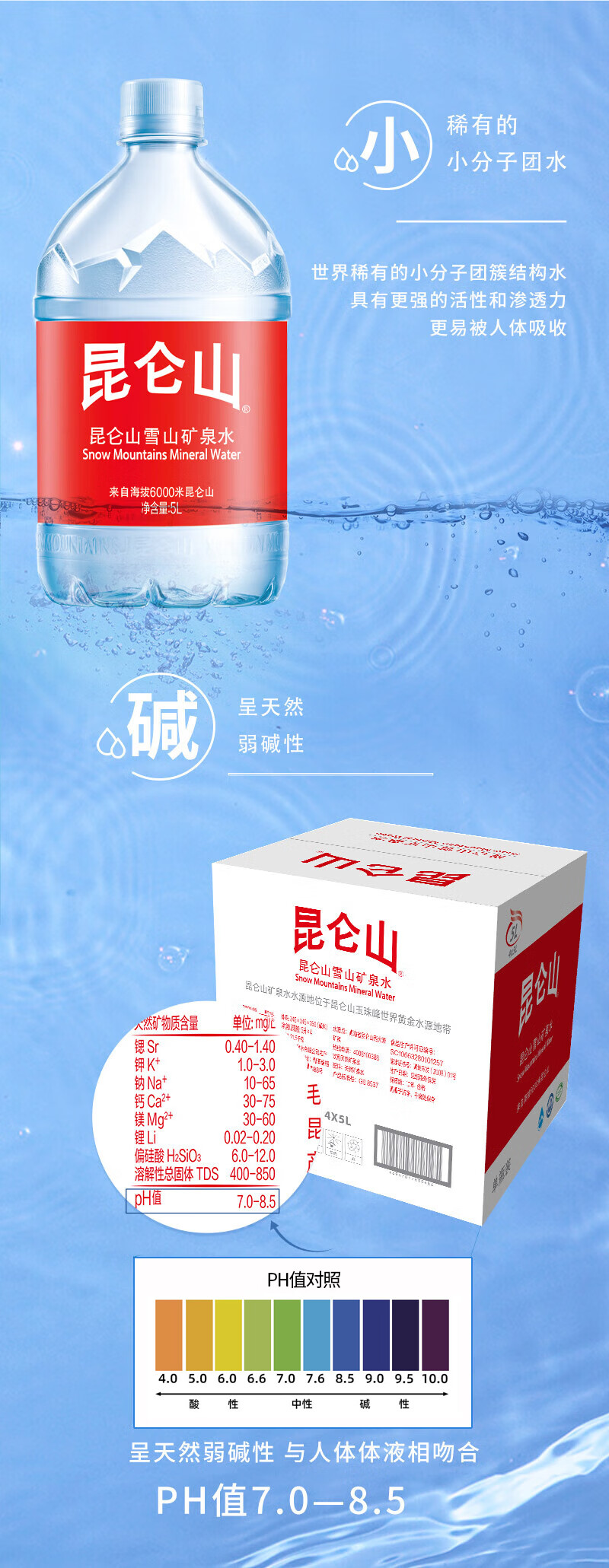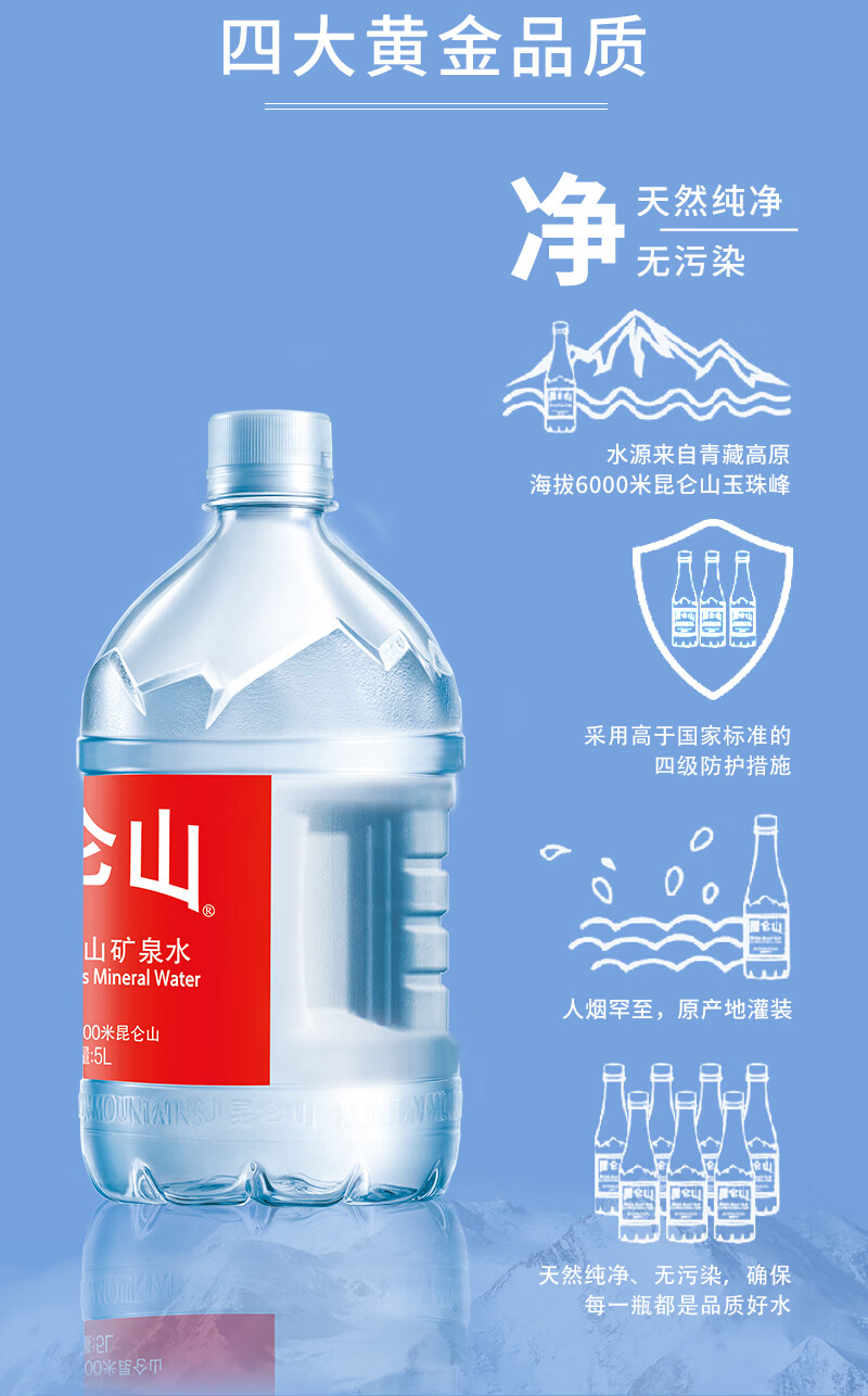 昆仑山雪山矿泉水5L*4桶 【泡茶水】