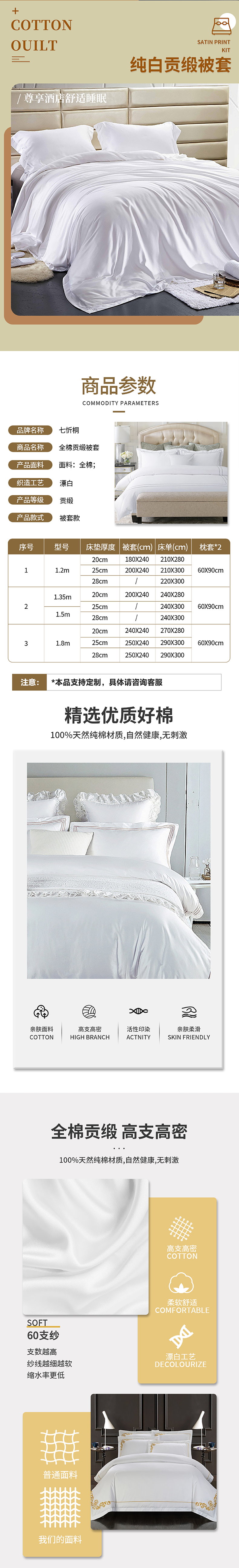【被套】七忻桐 40s*40s贡缎被套 适用1.2米床/1.5米床/2米床