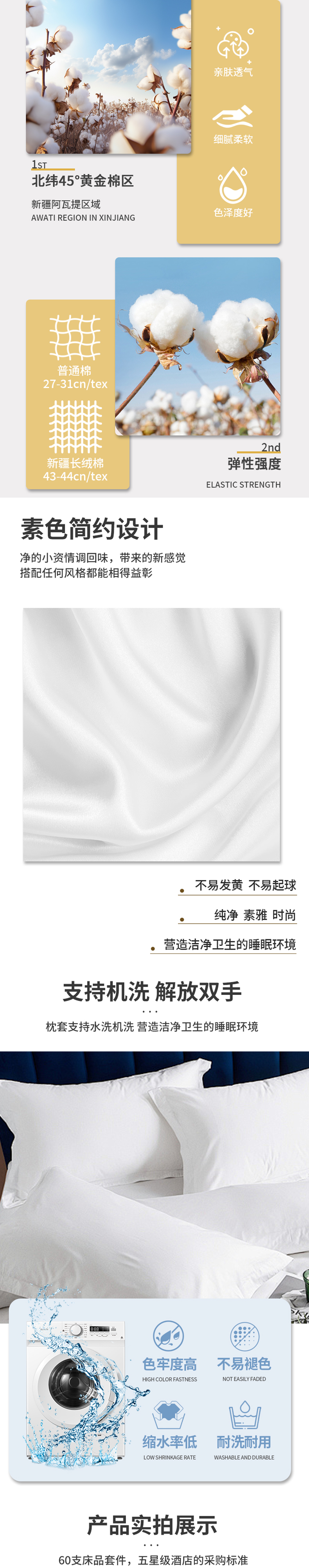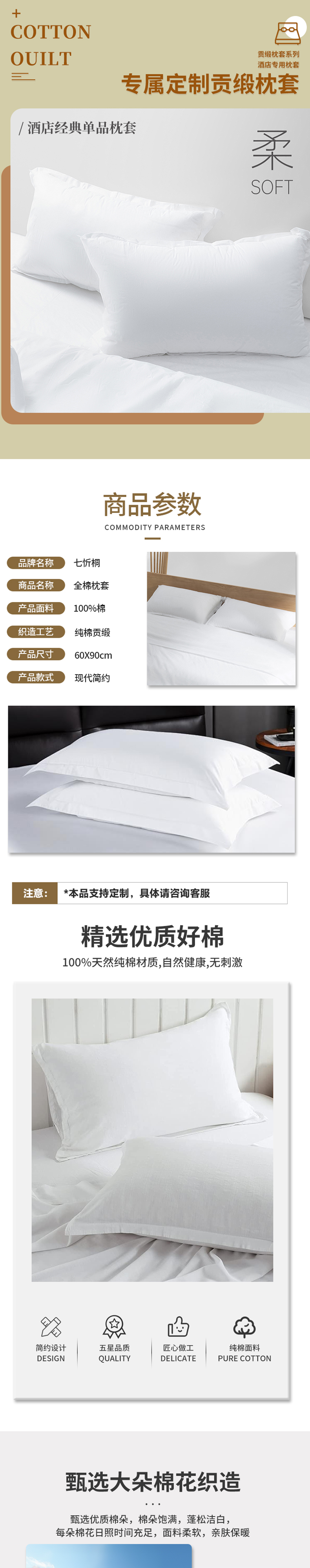 【枕套】七忻桐60s*40s贡缎飞边枕套 适用所有床型