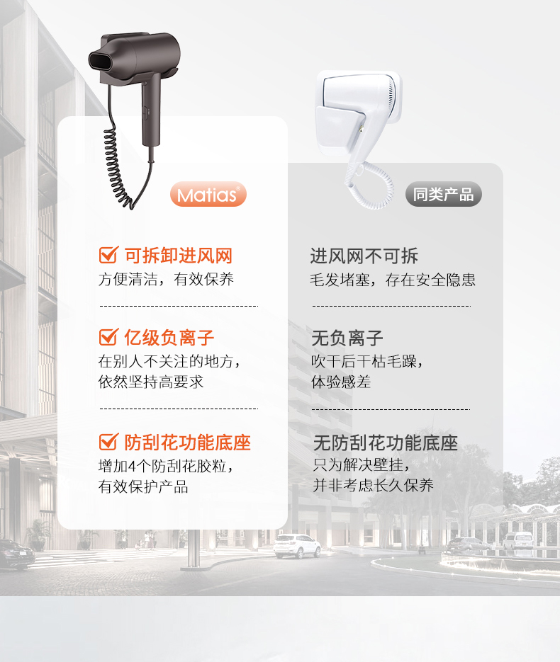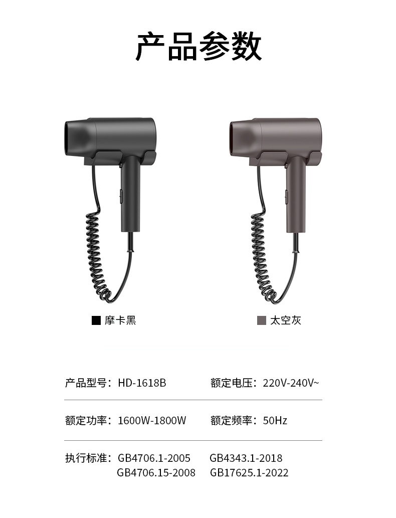 【Matias】HD-1875B壁挂式 酒店专用-负离子电吹风