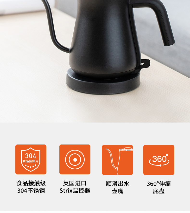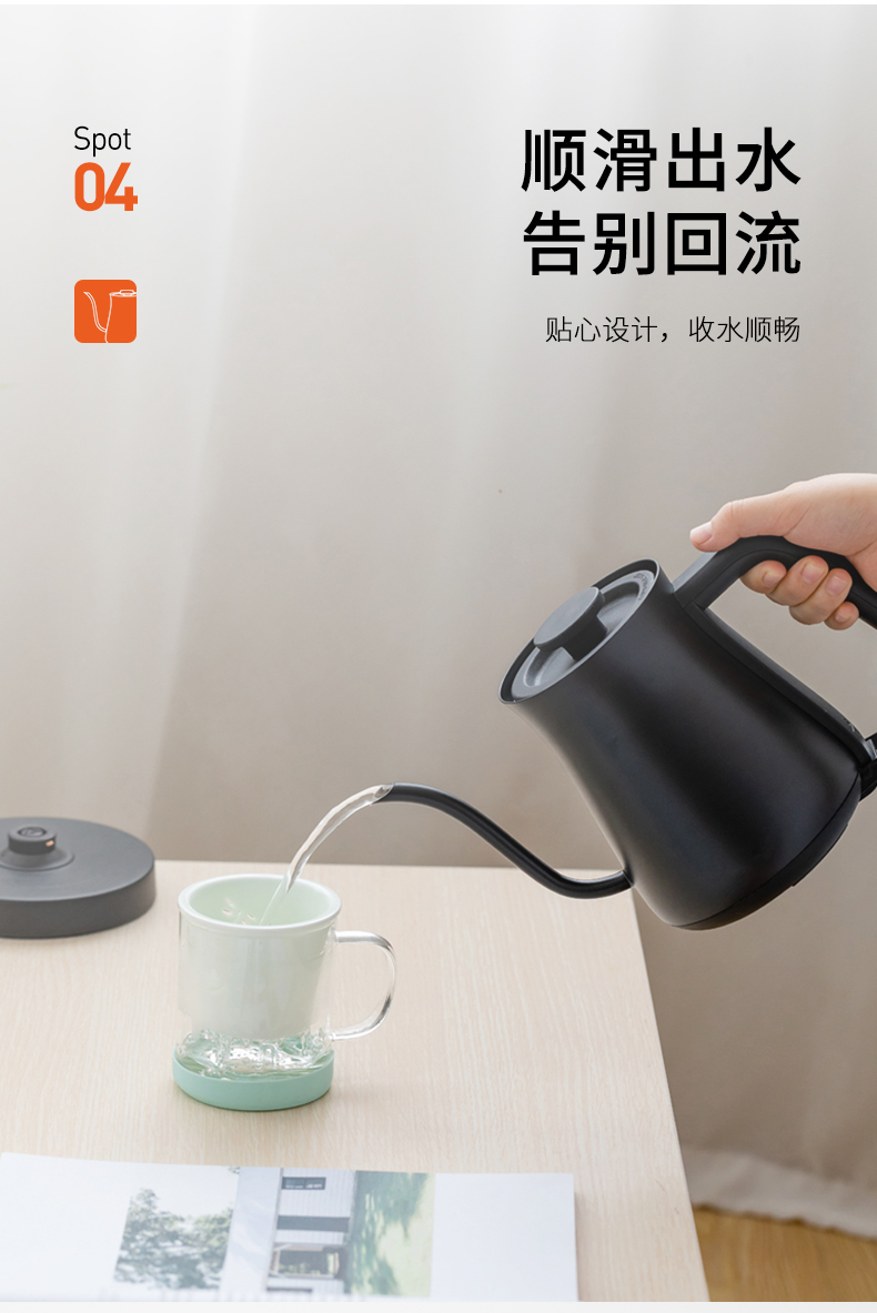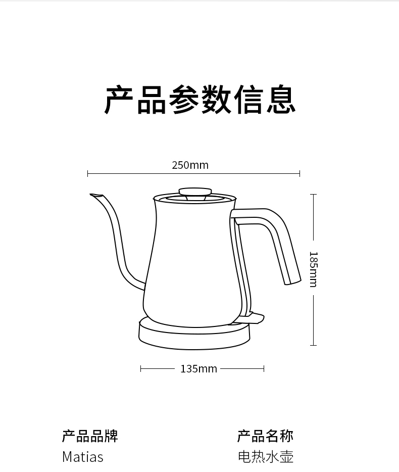 【Matias】EK-0810C 酒店专用-防水垢手冲咖啡茶艺细口长嘴壶泡茶电热水壶